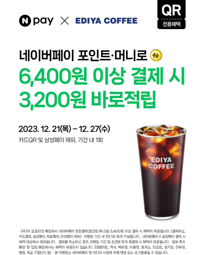 - 이 이벤트는 네이버페이 또는 이디야의 사정에 의해 변경 또는 조기종료될 수 있다.