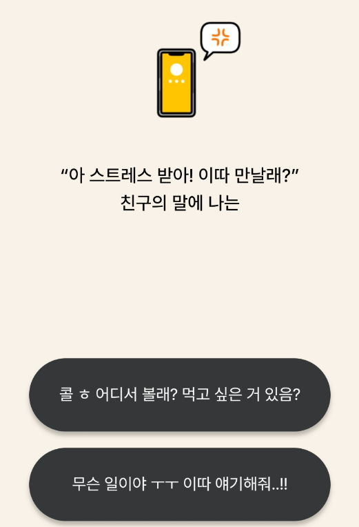 1. "아 스트레스 받아! 이따 만날래?'라는 친구의 말에 나는