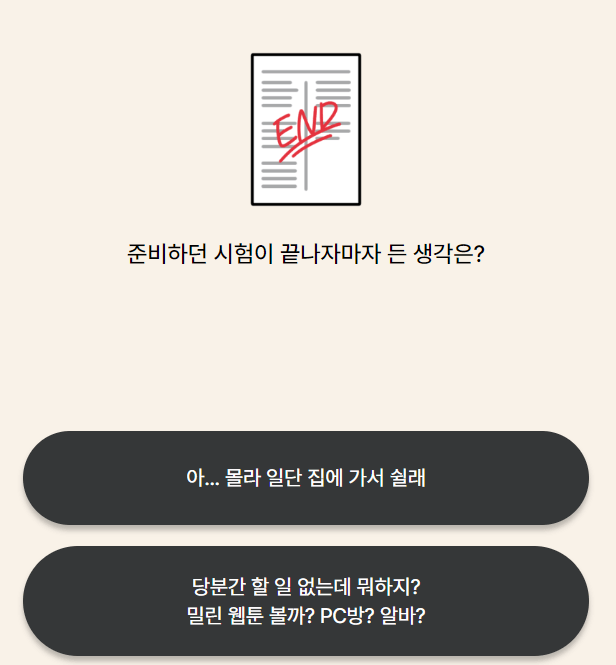 4. 준비하던 시험이 끝나자마자 든 생각은?