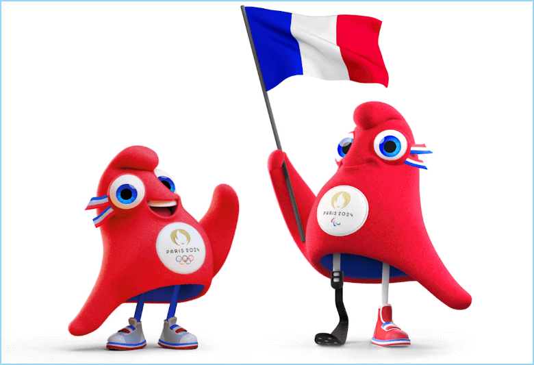 2024 파리 올림픽의 마스코트인 프리주(Phryge)는 프랑스 대혁명 당시 시민군이 썼던 모자인 프리기아 모자에서 유래되었다. 자유를 위해 투쟁하는 프랑스의 정신이 반영된 결과물이다. 자유, 평등과 박애를 나타내는 파랑, 빨강과 흰색으로 구성된 프랑스 삼색기를 기초로 도안을 그렸고, 여기에 프리기아 모자의 모티브를 응용했다. 패럴림픽의 마스코트인 프리주는 한쪽 다리가 의족인 것이 특징이다. (참고로 패럴림픽은 8월 28일-9월 8일까지 열린다.)